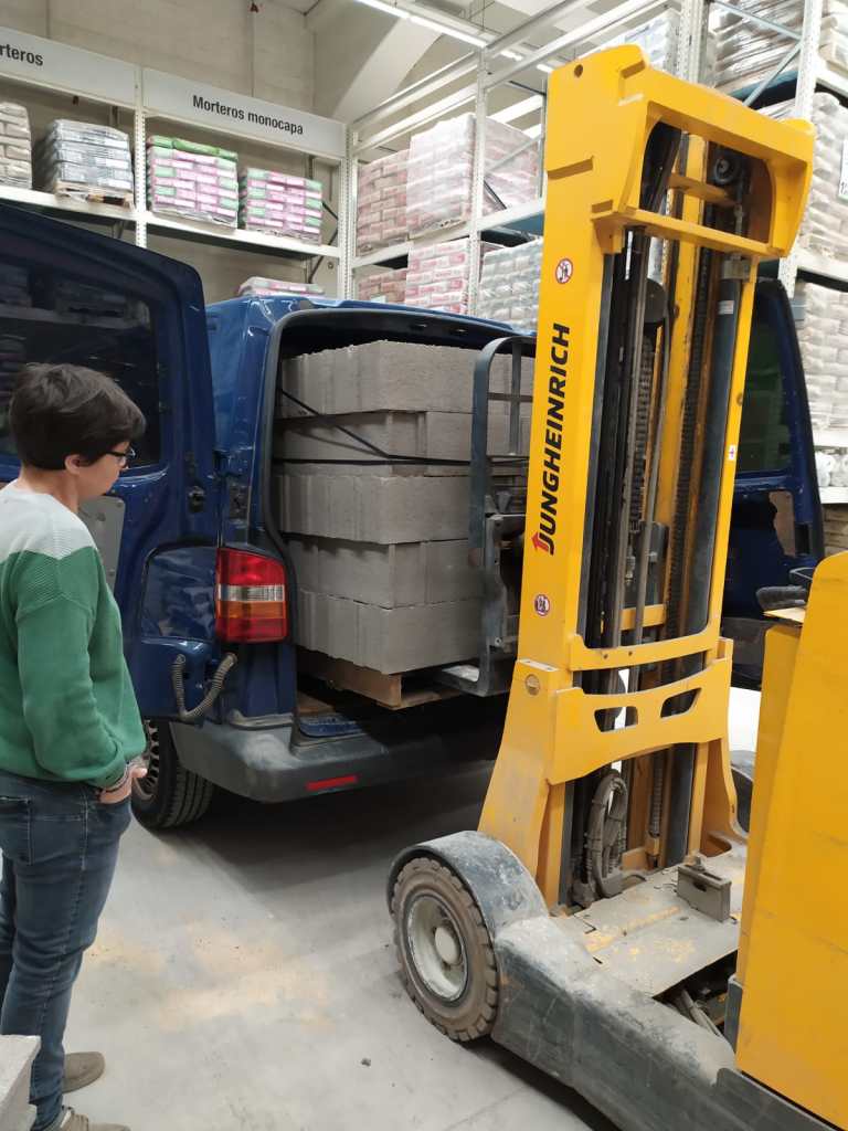 Queremos agradecer a Lorenzo de Loxam su amabilidad al ofrecernos la mula en unas condiciones tan ventajosas. También a Sagarmanta por cedernos una furgoneta donde poder cargar los ladrillos para las paradas y la mula. Sin vuestra ayuda no habría sido posible.